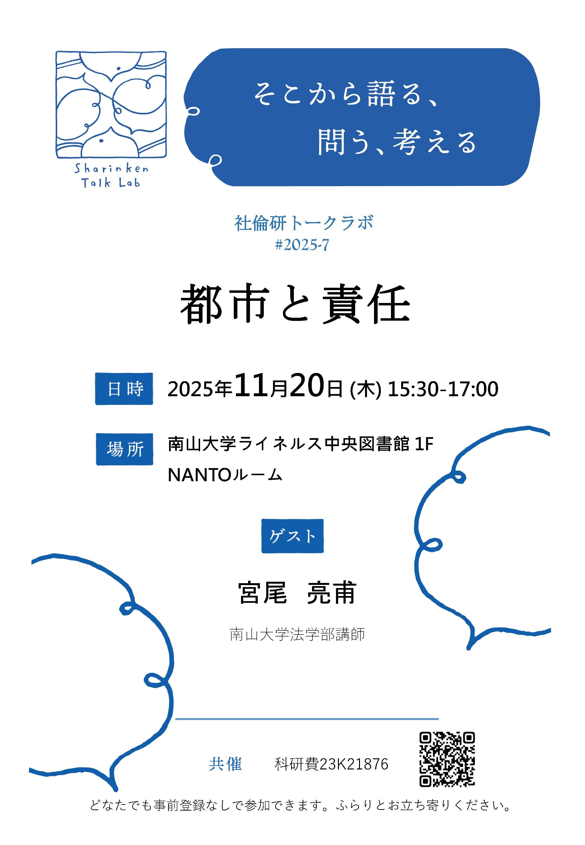 社倫研トークラボ#2025-7「都市と責任」開催のお知らせ