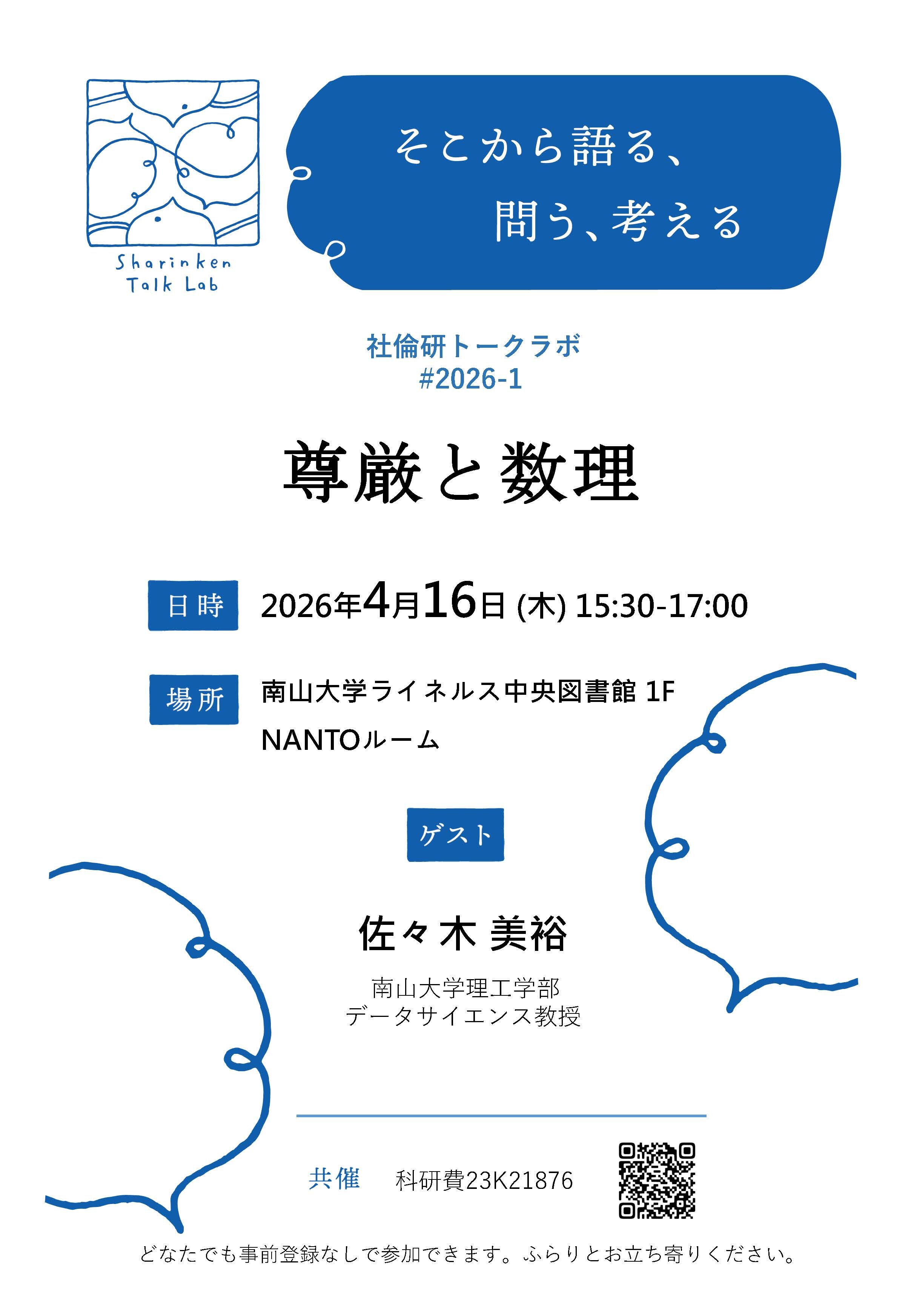 社倫研トークラボ#2026-1「尊厳と数理」開催のお知らせ