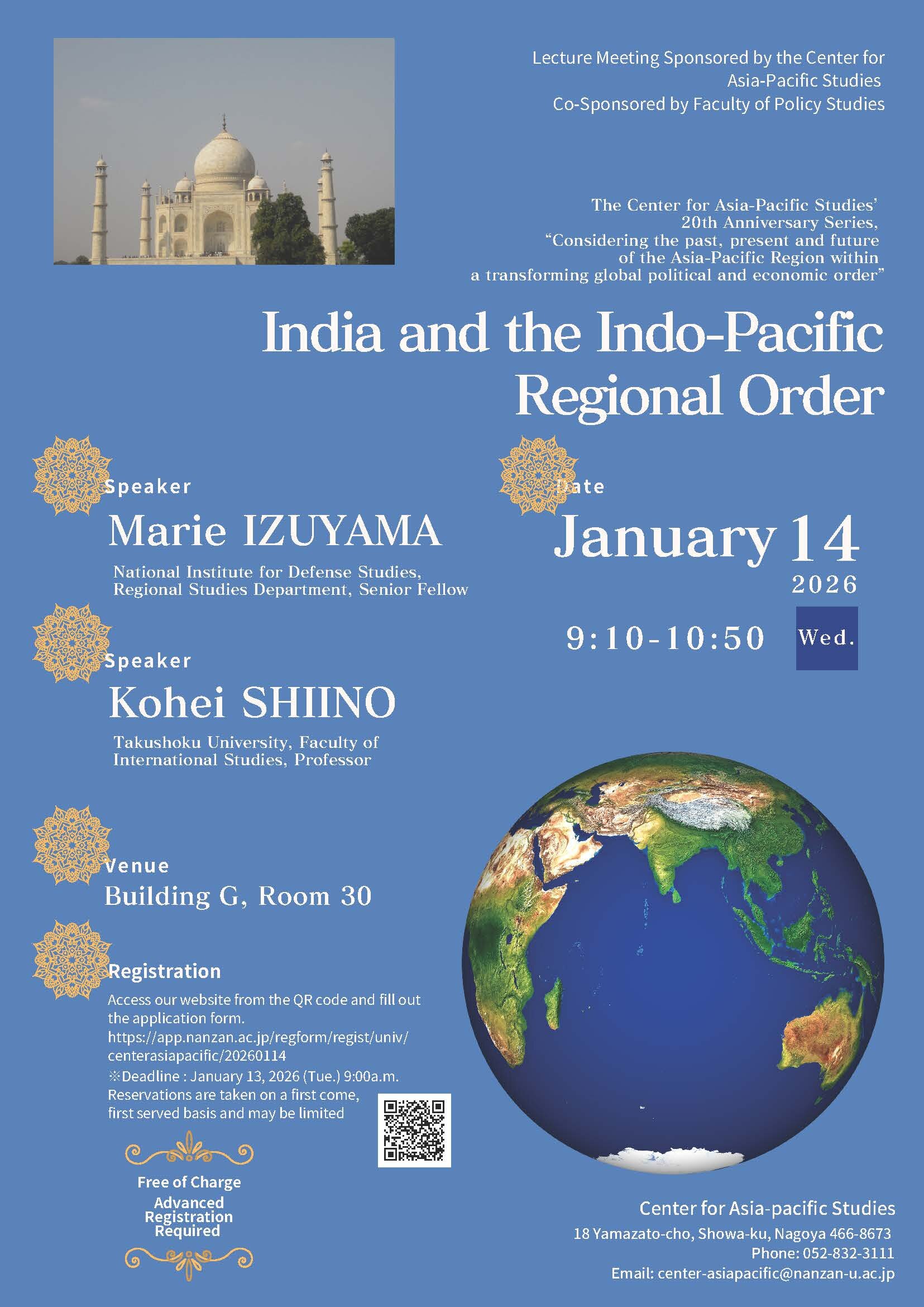 A lecture entitled "India and the Indo-Pacific Regional Order" will be held on January 14, 2026.