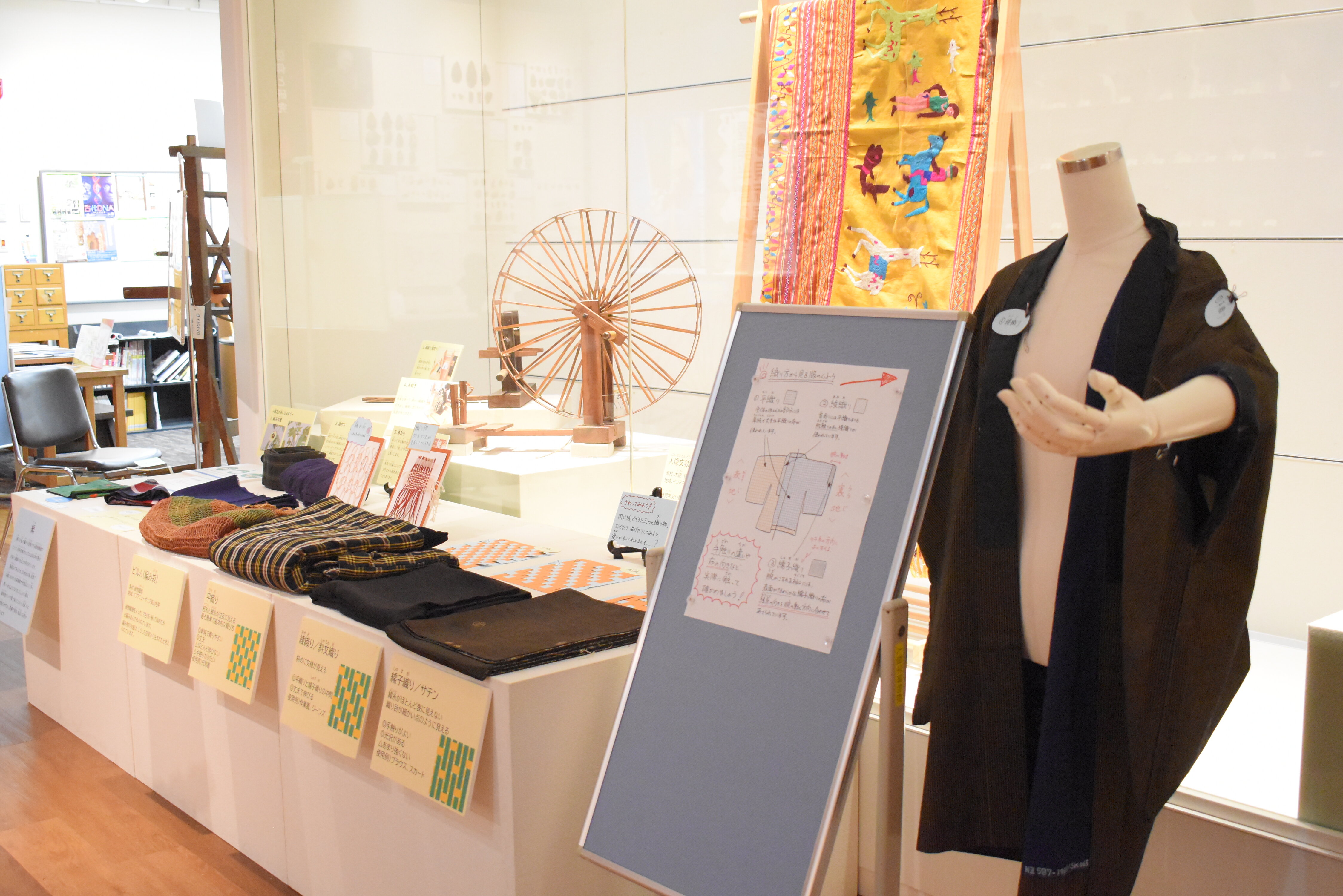 展示された布や道具には、ぜひ直接手で触れて、感じてみてください。